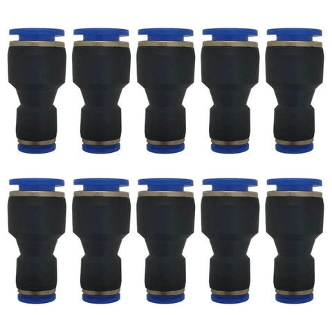 Push To Connect Pneumatic Fittings Straight Reducer Union Adapter Three Eighths Inch To One Quarter Inch Quick Connect Snaps On And Off Plastic And Stainless Steel Pack Of Ten