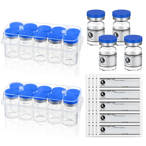 20 Pack Sealed Sterile 5ml Glass Vials With Self Healing Injection Port For Medical Lab And Home Use, Includes 20 Blue Label Stickers, Durable Seals, Leak Proof Design By Threlaco
