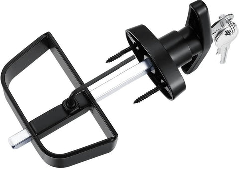 Shed door latch T handle lock kit with 4 keys, heavy duty metal hardware for storage barns and sheds, adjustable back D handle, black powder coated finish, fits doors up to 3-1/2 inch thick with 4-1/2 inch stem