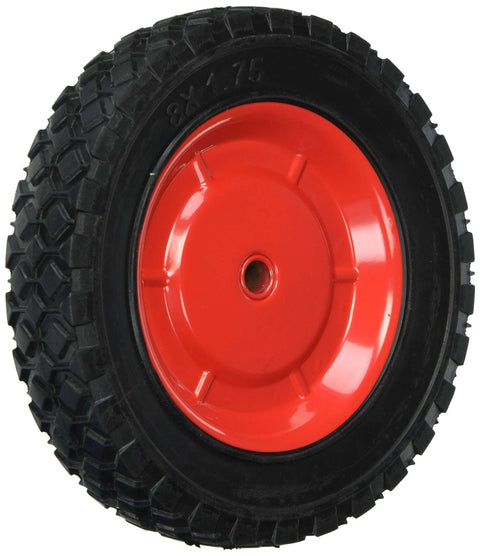 This 8-Inch semi-pneumatic tire with a steel hub and ball bearings is designed for hand trucks, lawnmowers, utility carts, and other lawn and garden gear. It combines a tough steel rim, Grafoil bearing, and a cushioned ride for stable, quiet operation.