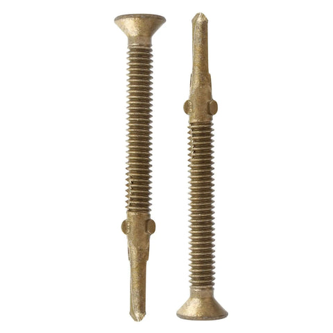 These #14 x 2-3/4 inch reamer Tek Torx self-drilling screws fasten wood to metal in rugged outdoor builds. They excel on trailer decks, flatbeds, truck beds, docks, and utility trailers where strong, corrosion-resistant joints are needed without pre-drilling in many cases. The bronze star triple ceramic coating provides exterior protection, and ACQ treated lumber compatibility makes them ideal for outdoor applications.