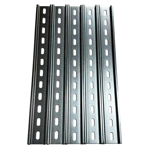 Slotted Zinc Plated Steel DIN Rail Mounting Rail RoHS Compliant 35mm Wide by 7.5mm High Pack Of Five For Electrical Control Panels Enclosures And Industrial Equipment Installations And Applications