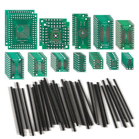 SMD To DIP Adapter Kit With 51 Pieces In 12 Types For SOP SOT 0402 0603 0805 TQFP And QFN Prototyping Boards Plus 40 Pin 2.54mm Male Headers For Flexible Circuit Prototyping And Electronics Projects
