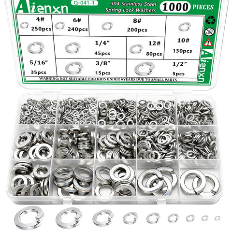 Split Lock Washers Assortment Kit 1000 Pieces 9 SAE Sizes 304 Stainless Steel