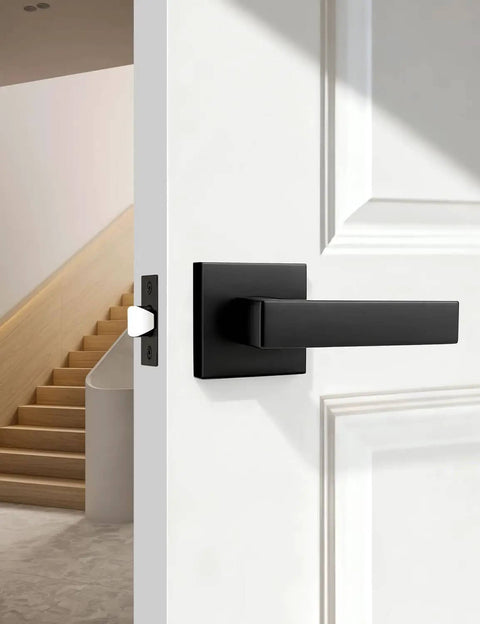 Square Black Interior Door Handle Set No Lock Passage Lever for Left or Right Handed Doors, Heavy Duty Matte Black Closet Door Handle, 1 Pack, Easy Install, Durable Zinc Alloy Build For Lasting Durability