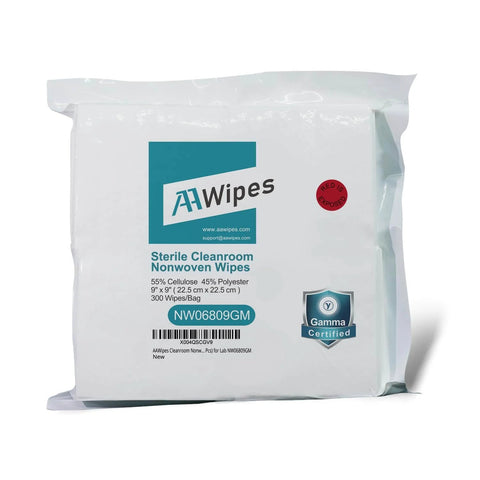 Sterile Cleanroom Nonwoven Wipes 6x6 Inches, Bag Of 300 Pcs For Lab Use, Hydro Entangled Fifty Five Percent Cellulose Forty Five Percent Polyester Blend, Pro Grade Absorbent And Durable Wipers For Delicate Surfaces, AAWipes NW06809GM