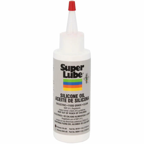 Super Lube Silicone Oil 4 oz bottle is a high-performance lubricant designed for environments requiring stability across a wide temperature range. This NSF H1 registered, food-grade fluid is widely used in automotive, machinery, and food processing settings where incidental contact with food may occur.