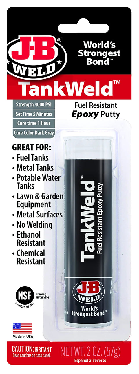 TankWeld Gas Tank Repair Epoxy Putty For Metal, Hand Mixable, Steel-Reinforced, Non-Rusting Formula That Sets In 5 Minutes And Cures Dark Grey In 1 Hour, 900 PSI Tensile Strength, Great For Gas Tanks, Radiators, Lawn Equipment, Water Tanks, 1 Oz