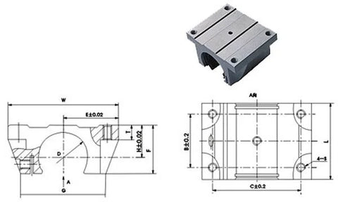 | TBR20 Aluminum Open Slide Unit with One pre-installed 20mm Ball bushings Can be used with 20mm Shafts |