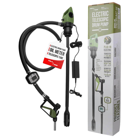 TERA PUMP Electric 55 Gallon Drum Pump with Digital Flow Meter, 7.1 GPM, Telescoping Suction, Fits 55 gal to 275 gal Drums, Single Unit