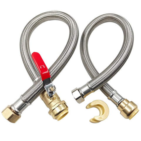 - Long-lasting stainless braid adds durability and kink resistance - Tool-free, push-to-connect style speeds up hookups - Works with copper, PEX, CPVC, PE-RT, and SDR-9 HDPE piping - Built-in valve lets you stop water flow instantly during maintenance