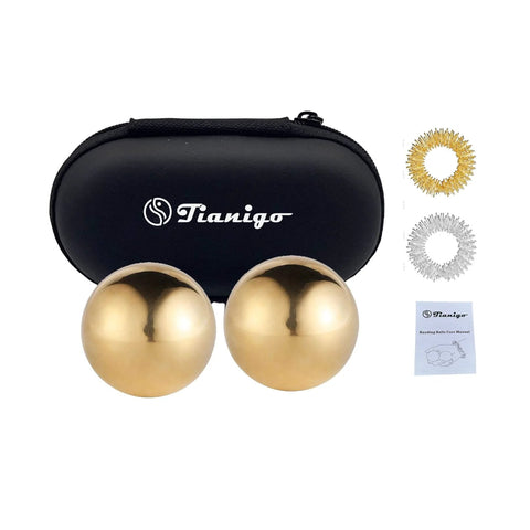 Tianigo Copper Baoding Balls Set, 1.57 Inches Chinese Health Balls, Metal Stress Relief Hand Massage Balls No Chime for Hand Exercise, Hands Therapy