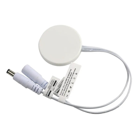 This touch-activated dimmer switch controls low-voltage LED strips and under-cabinet lighting, offering a sleek, button-free look by sensing touch through thin surfaces like wood or glass. Its compact form hides behind panels and keeps wires out of sight.