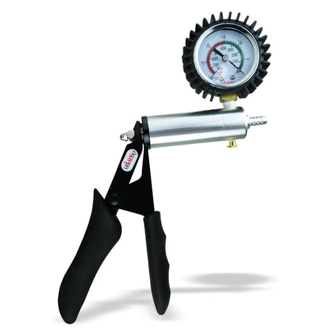 Ultima Vacuum Pump Handle With Gauge, Protective Rubber Cover, Silver Aluminum Chamber, And Black Ergonomic Silicone Grips For Precise Metering, 0-30 Hg (0-760 mmHg) Range, Durable Alloy Construction