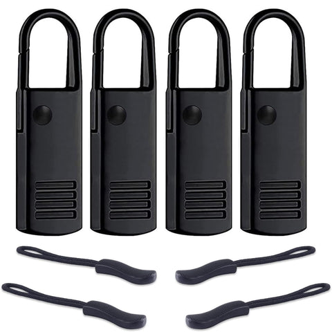 Universal Metal Zipper Pull Replacement for Luggage 8Pcs Black Zipper Tabs, Durable Quick Install Zipper Heads for Bags, Suitcases, and Backpacks, Easy Snap On Repair Kit for Damaged Zippers