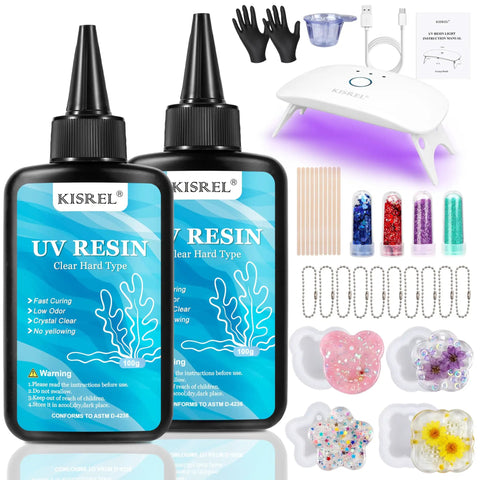 UV Resin Jewelry Making Kit With 200g Crystal Clear Resin Flexible Molds Glitter Powder Portable UV Lamp And Tools For DIYers Keychains Earrings And Crafts