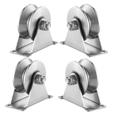 V Groove Gate Roller For Heavy Duty Sliding Gates With Double Bearings Stainless Steel Wheel And Solid Bracket Plate Casters Boss Grade For Rolling Gates Garage Doors And Industrial Machines