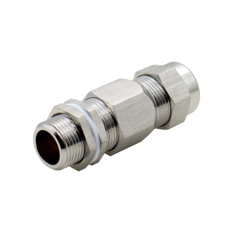 This heavy-duty stainless steel cable gland is designed for pass-through sealing in control boxes, enclosures, and outdoor machinery.