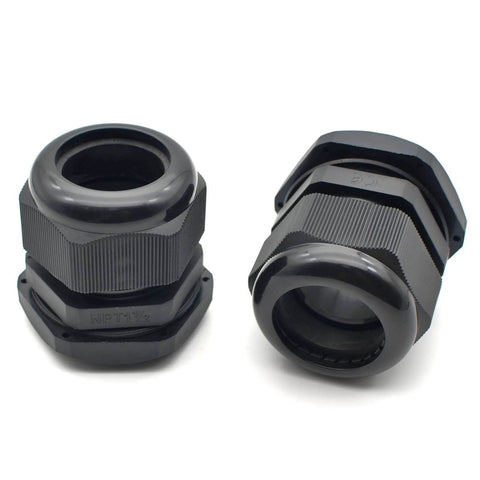 These waterproof glands install in panels or enclosures to seal and strain-relieve 25-32 mm cables. Made from flame-retardant PA66 with rubber seals, they stand up to outdoor, marine, and industrial conditions. The two-pack features standard 1-1/2 inch NPT threads for quick, secure mounting.