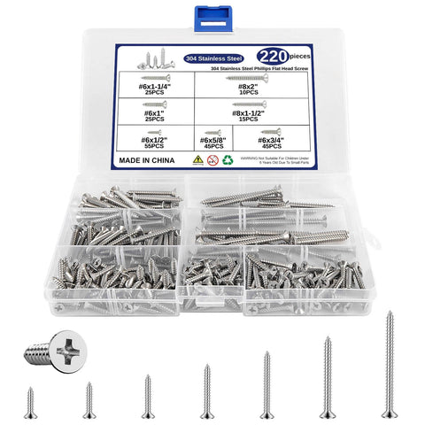 - Keeps cabinets, decks, furniture, and wood projects fixed with durable fasteners - 304 stainless steel resists rust and corrosion for indoor/outdoor use - Phillips flat head simplifies driving with standard screwdrivers or drills - The organized case with size-sorted compartments speeds up workflow and minimizes searches