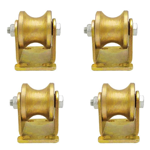 Pulley,Pulley Wheel, 4pc Heavy Duty Rigid Wheels,Sheave Directional Track Roller,Double Bearing,Gold,for Industrial Machines,Sliding Door,Rolling Gates,Wire Rope Rails(95mm/4in)