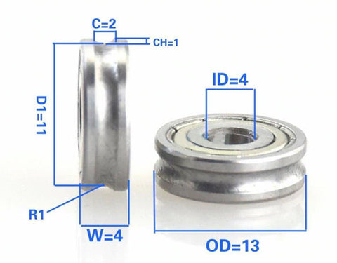 Rolamento 4mm - Roller com ranhura em U 13mm 4x13x4mm