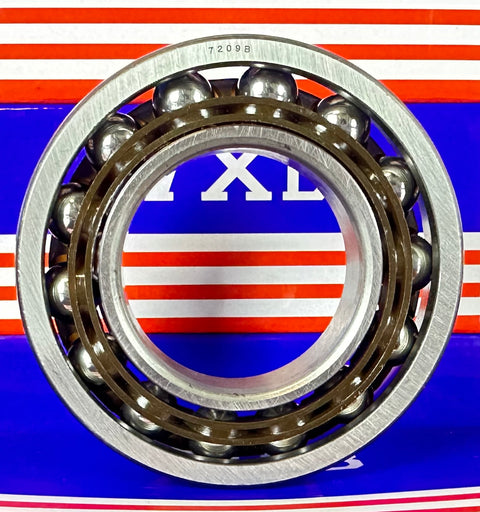 7209B Single Row Angular Contact Spindle Ball Bearing, ideal for industrial and commercial use, this bearing handles combined axial and radial forces efficiently, Axial loads can be taken on one direction only. made from durable 52100 alloy steel, commonly known as chrome steel.