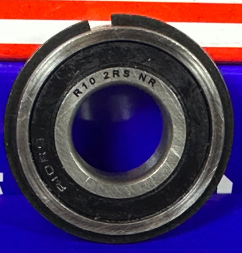 This single R10-2RSNR deep groove ball bearing comes with double rubber seals and an integrated snap ring for easy axial location in housings. It’s pre-greased and ready to run, making it a handy fit for motors, tools, carts, and general machinery where clean operation and secure positioning matter.